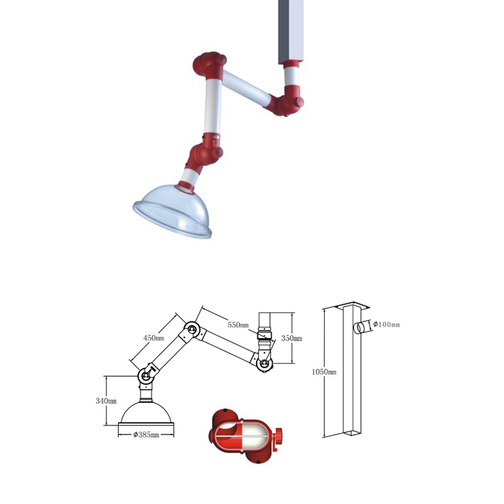 The flexible arm helps to extract the chemical gas from the equipment on the lab bench